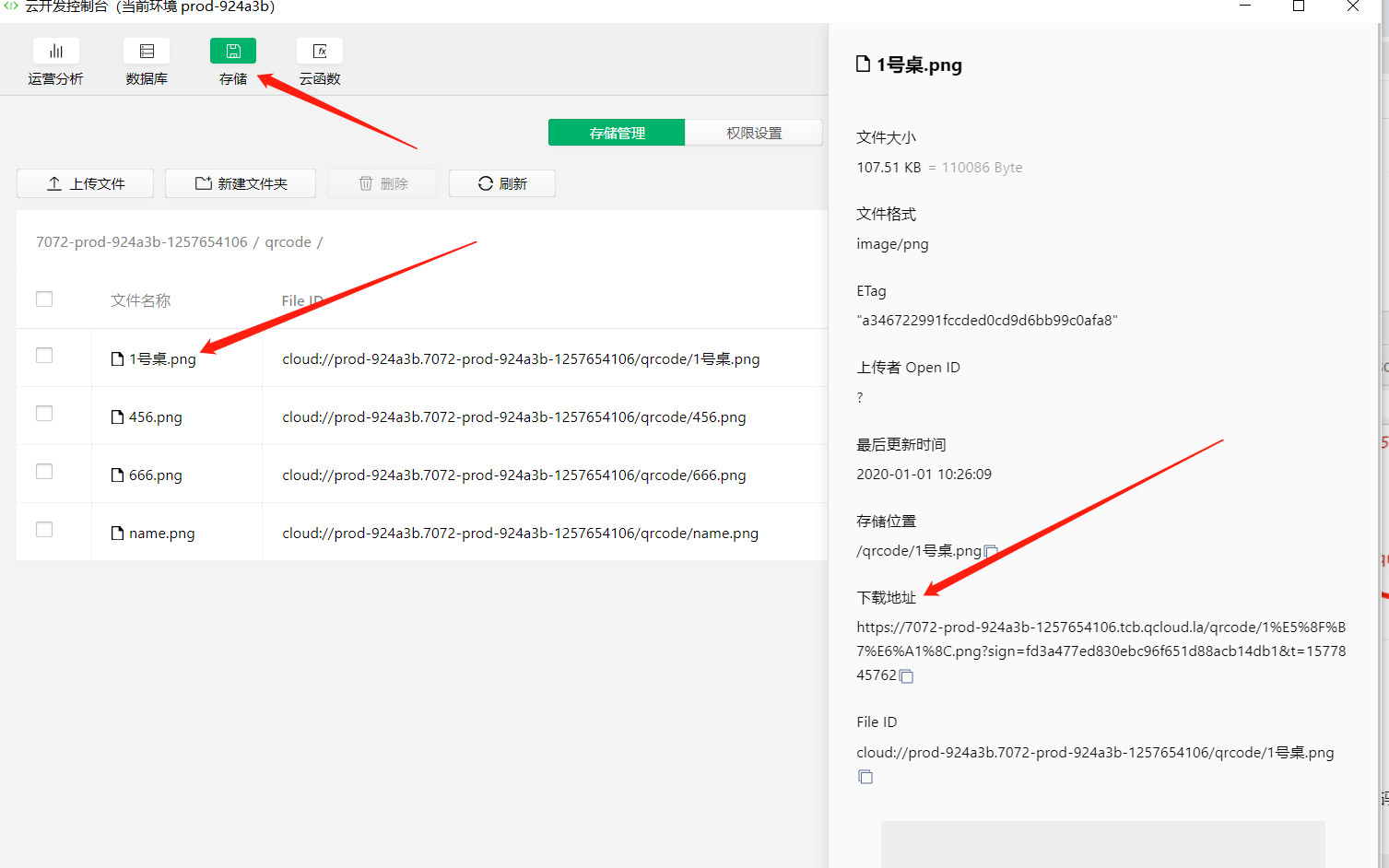 然后再到云存储里获取对应的二维码,