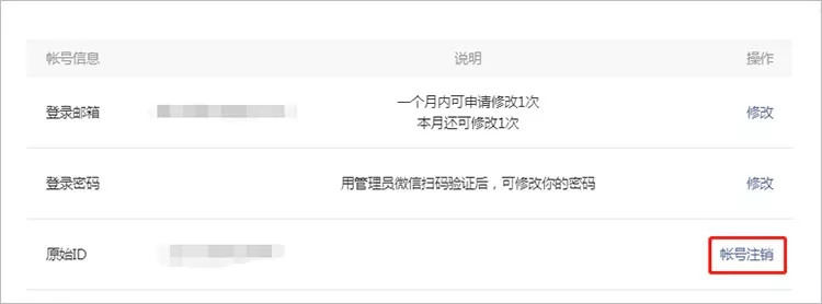 进入小程序后台-设置-原始ID-注销账号。同意协议后,扫码即可进入账号冻结期。
