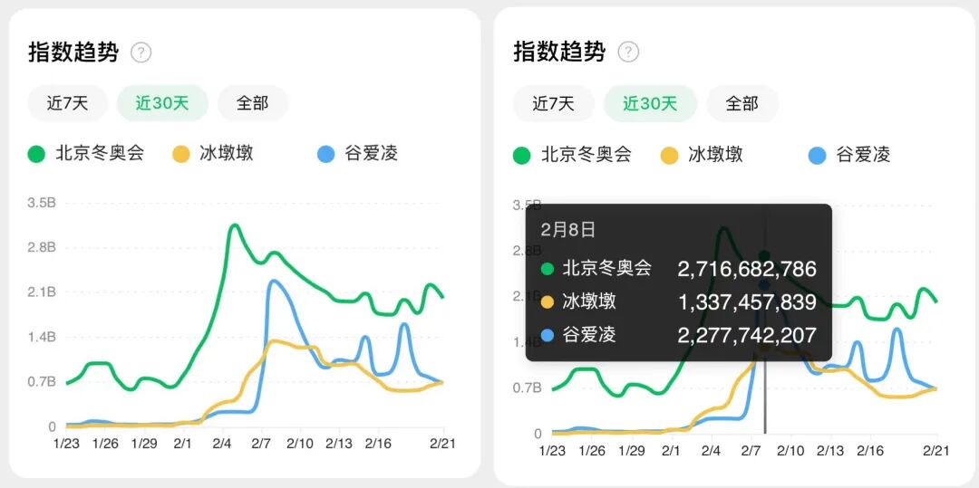 △ 北京冬奥会、谷爱凌、冰墩墩微信指数对比