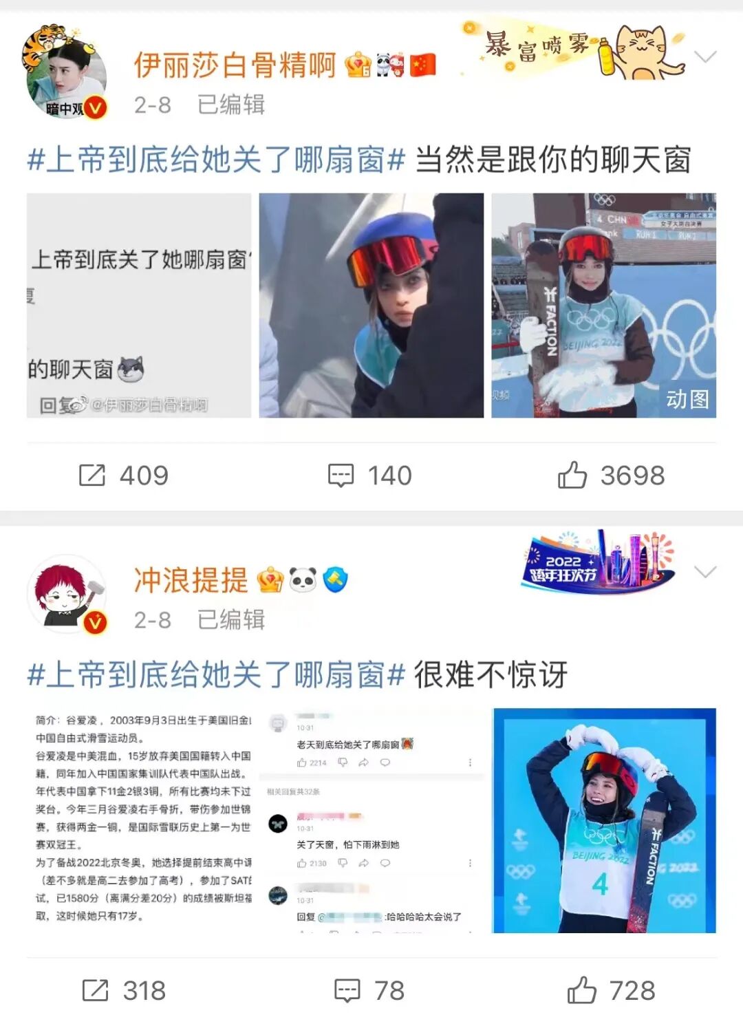 微博作为舆论发酵的重要发源地,加速了谷爱凌热度的扩散,推动其走向高潮。
