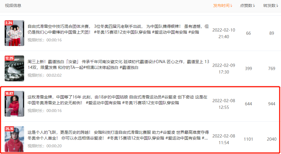 从这次冬奥的宣传来看,品牌很多都有配合视频宣传。像安踏,及时借助冬奥热点,配上代言人赛事相关的视频,获得比平常更多的曝光。当然,这个还得获得赛事的授权才行。