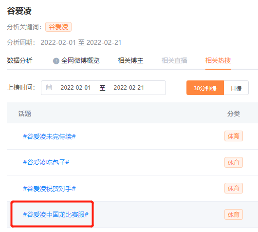 △ 2月1日-2月22日 谷爱凌相关微博热搜