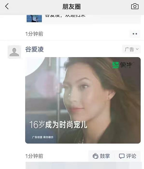 蒙牛在谷爱凌夺冠后便迅速在微信朋友圈打起了广告,收割了巨大流量。