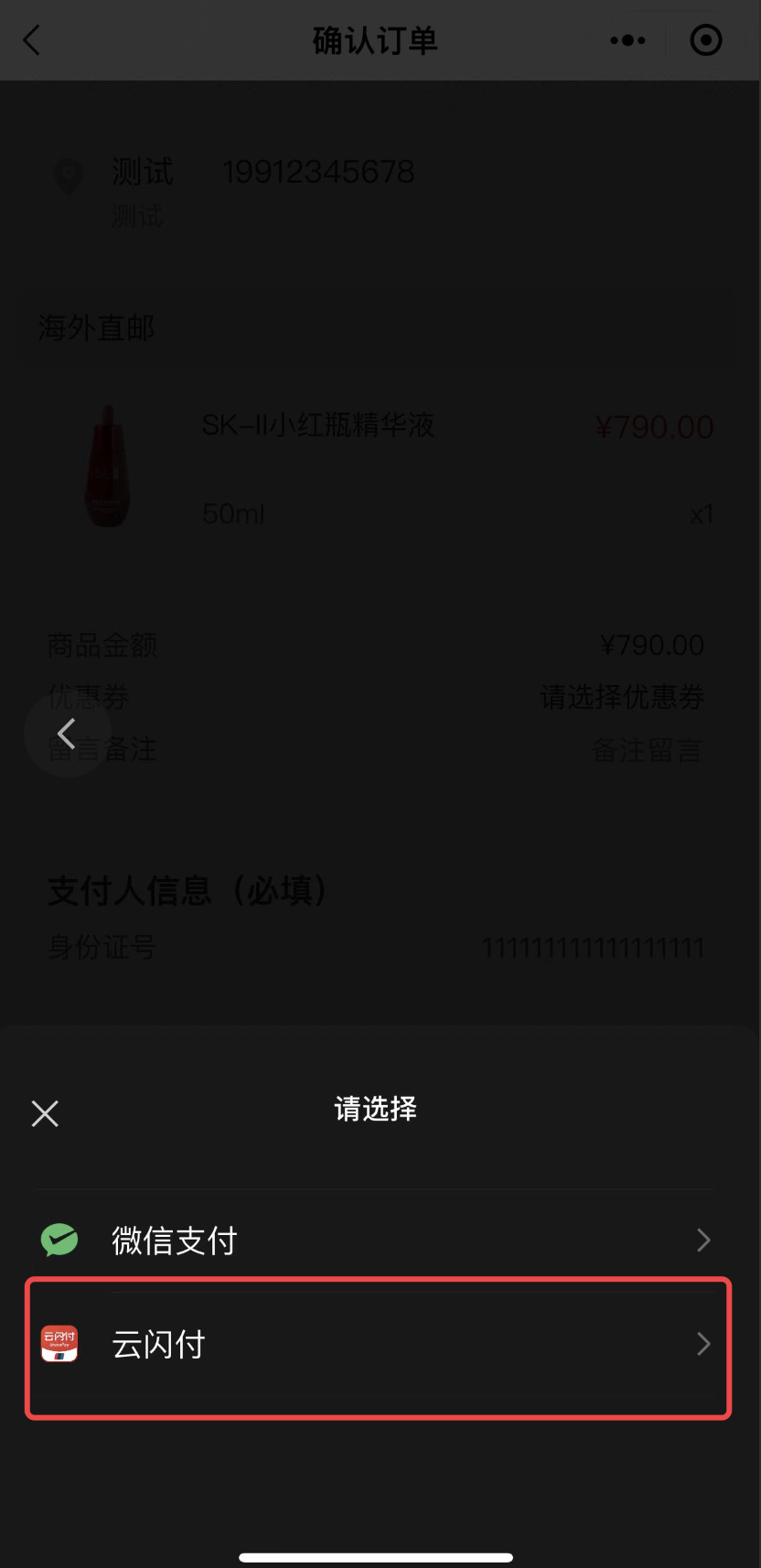 5.开通了“自助清关”产品不会展示云闪付;