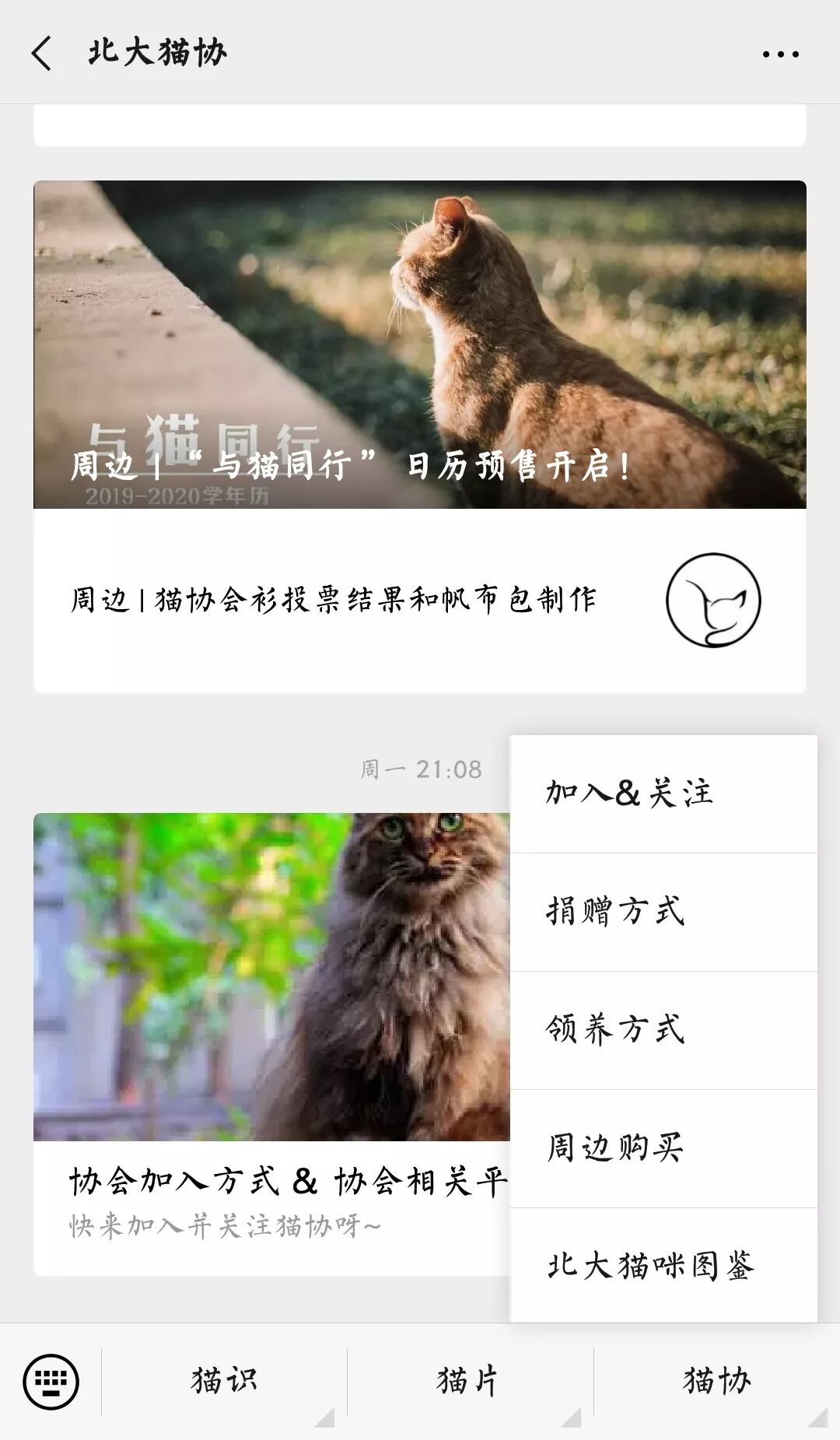 点击菜单栏“猫协”—“北大猫咪图鉴”