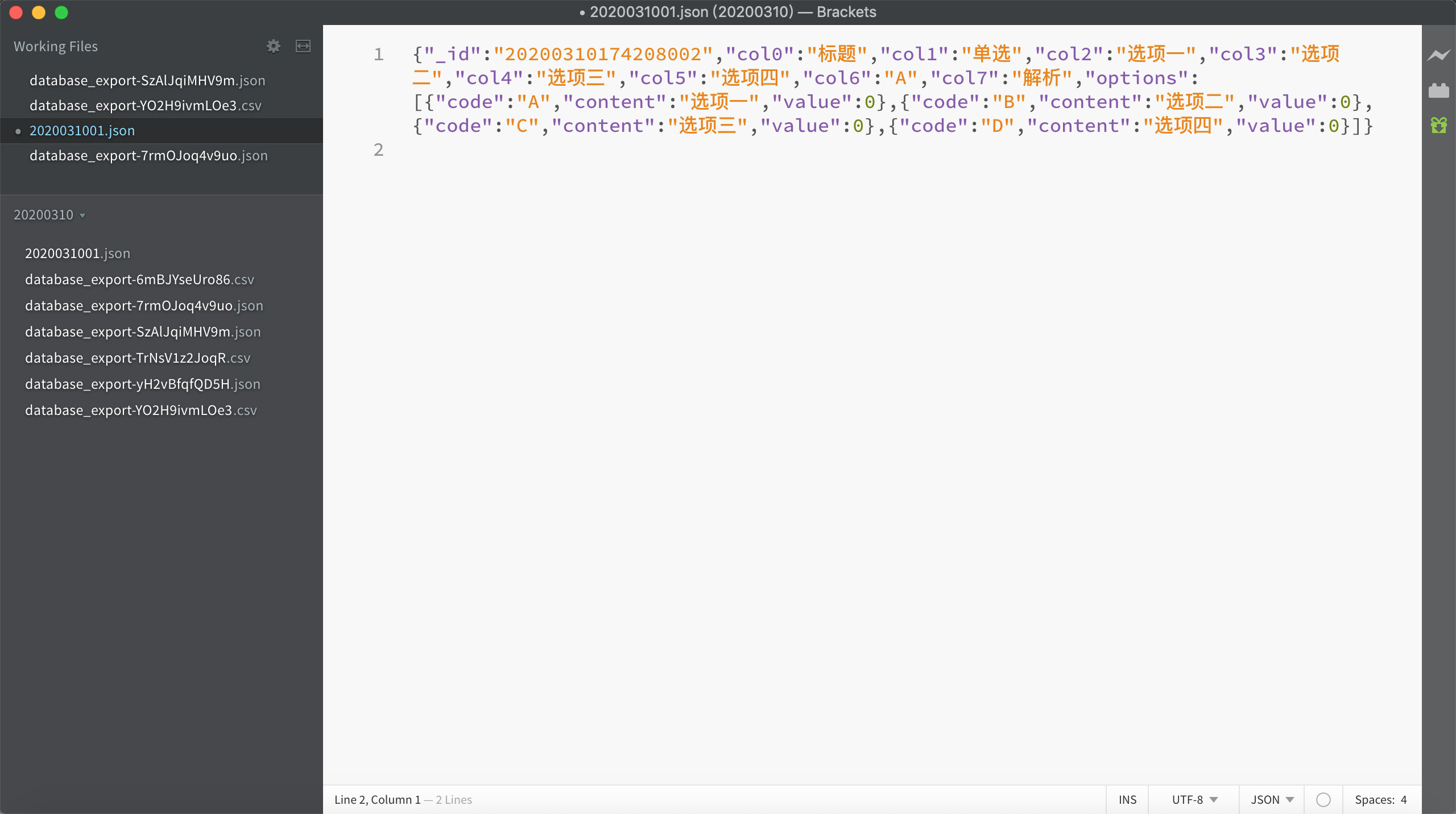 打卡:20200315,能生成云开发数据库可使用的JSON文件,不需要改动,直接可以导入。