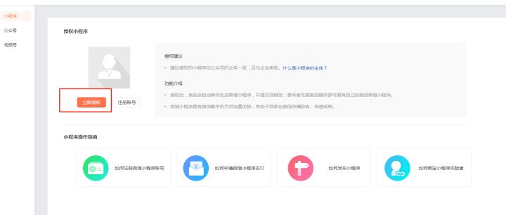 设置好相关的内容之后,只需要点击右上角的预览保存,将前面注册的小程序授权给平台,即可发布。