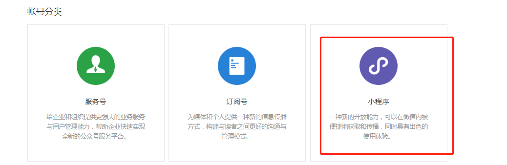 注意:如果你想做一个商城小程序,你必须注册一个企业小程序,这样你才能有支付功能。