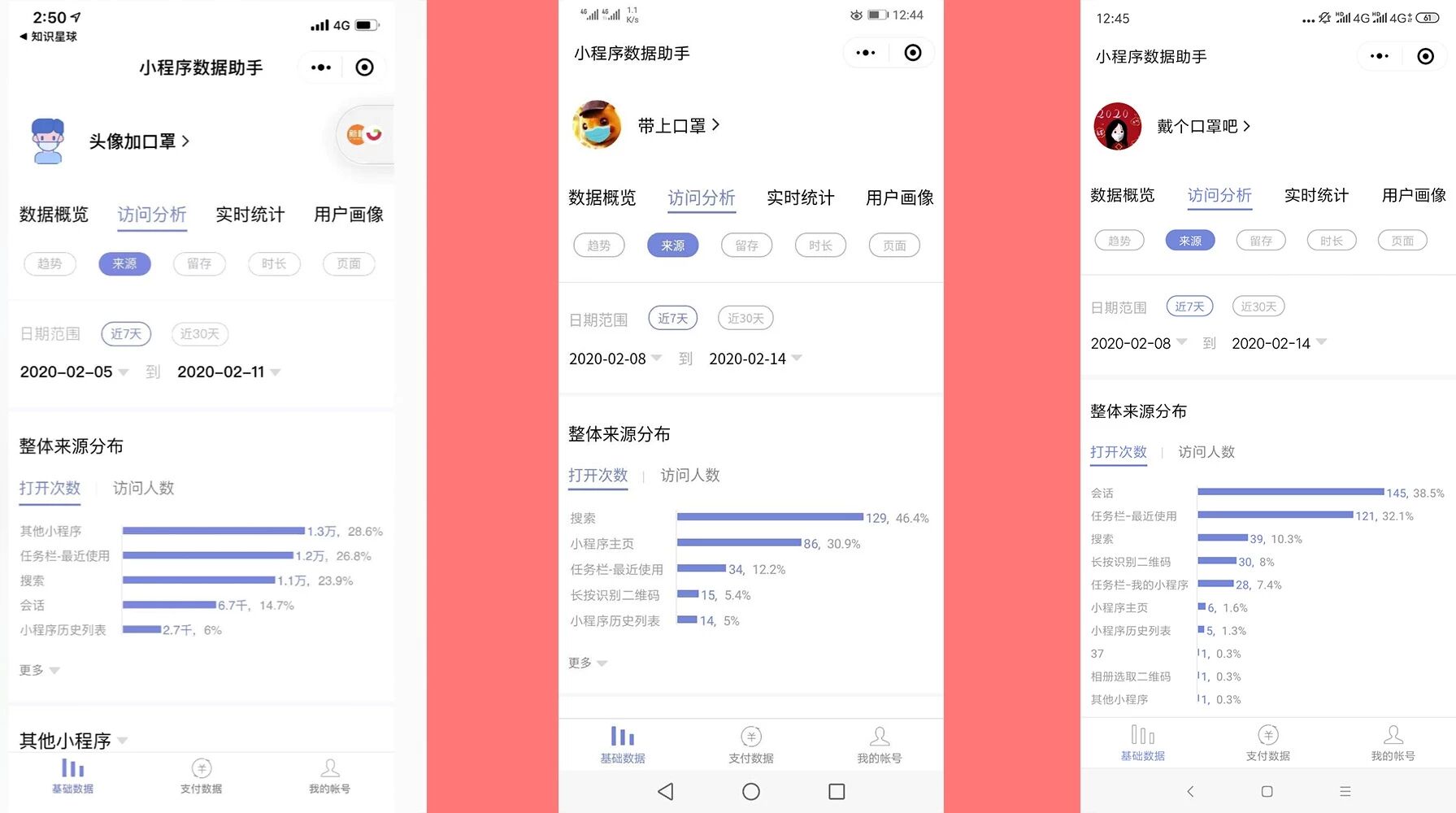 工具类有很多可以做:题库、技术文档、教程、去水印等。目前最火爆的应该属于疫情相关类的工具,关于疫情数据类小程序不做分析,没资质也没权利,主要说疫情周边可运营的工具。头像口罩,代表小程序:头像加口罩、戴个口罩吧、戴上口罩(每日搜索量约等于2000),可参考以下做法:
