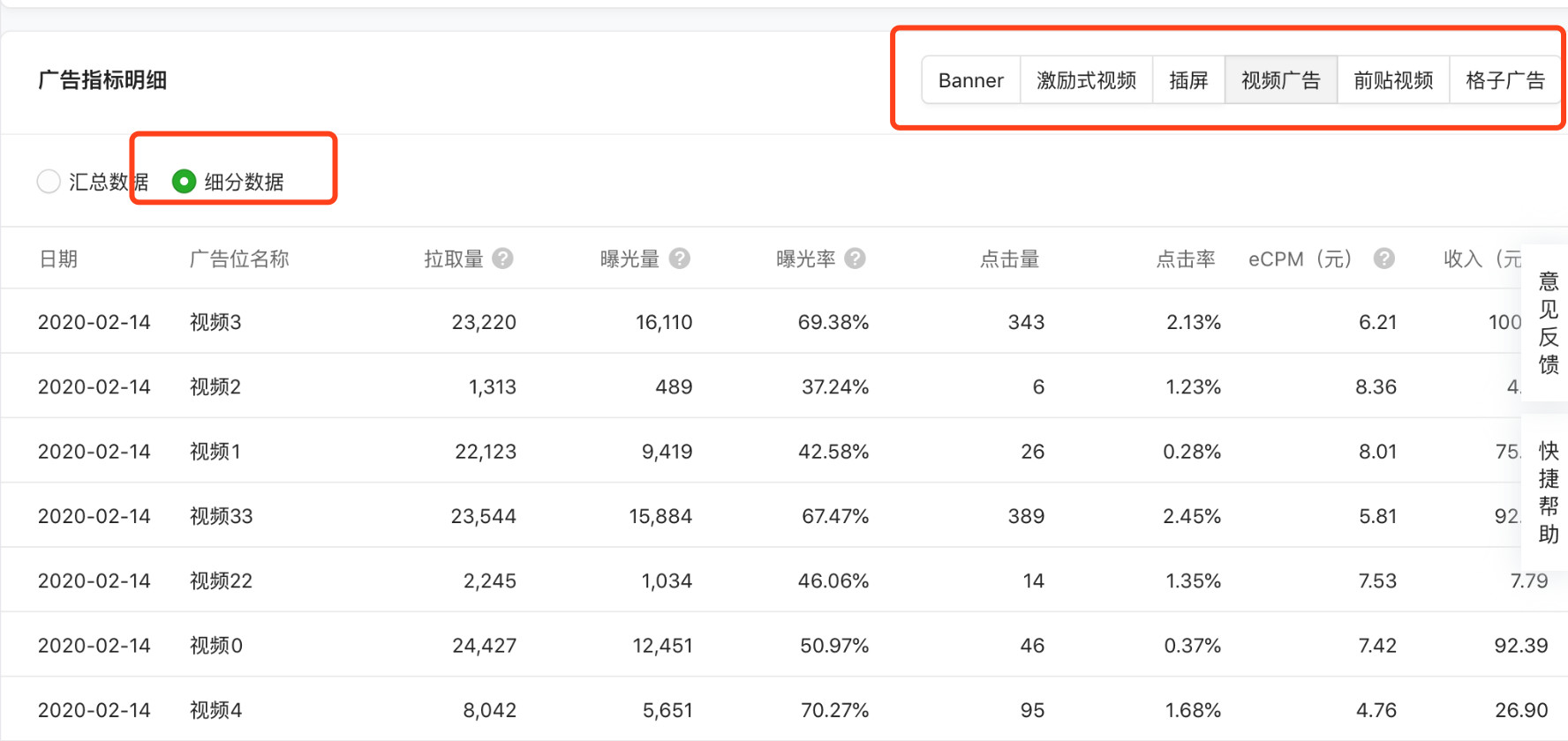 3、banner广告收益是按有效点击计算的。很多人好几千曝光,但是点击只有几个、十几个,这种情况需要不断去优化接入的场景/位置,提高用户点击意愿。个人技巧:banner广告位尽量不要太多,1-2个就可以。尽量多放几个视频广告位,这样曝光也有收益。格子广告没试过,用过都说不好~