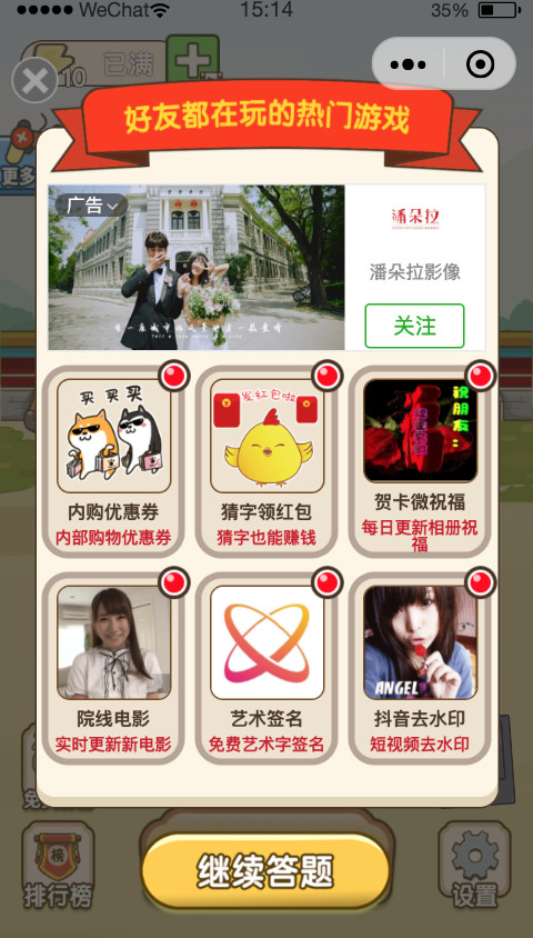 运营分析:关卡尽量多,入门、初级、中级、高级,高级模式可以做类比循环,形成无限关卡模式,闯关奖励机制,签到机制等。这种类型的小程序比较方便运营,裂变起来也快。