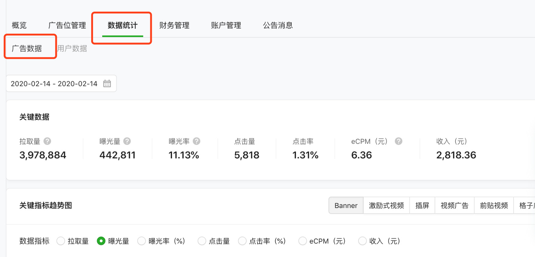 失败案例举例:小程序的主页、个人中心页用同一个banner广告位,这样做出来一点好处都没有,后台只能看到banner收益是多少,看不到是哪个页面收益。极端情况,收益全部再首页,个人中心页没有广告收益,这种情况开发者是不知道的,如果把广告位分开,这种情况可以去优化个人页面,或者主页面换成视频banner。广告位分析页面:流量主--数据统计--广告数据--广告指标明细--细分数据