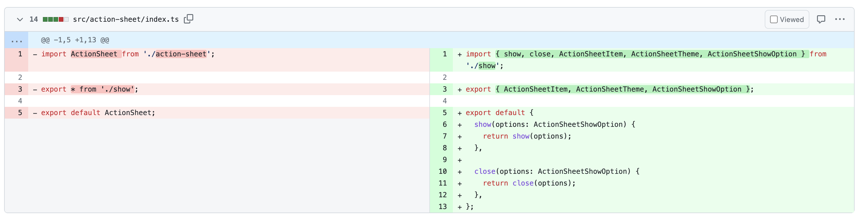 不再直接导出 ActionSheet 组件,仅导出组件实例方法。