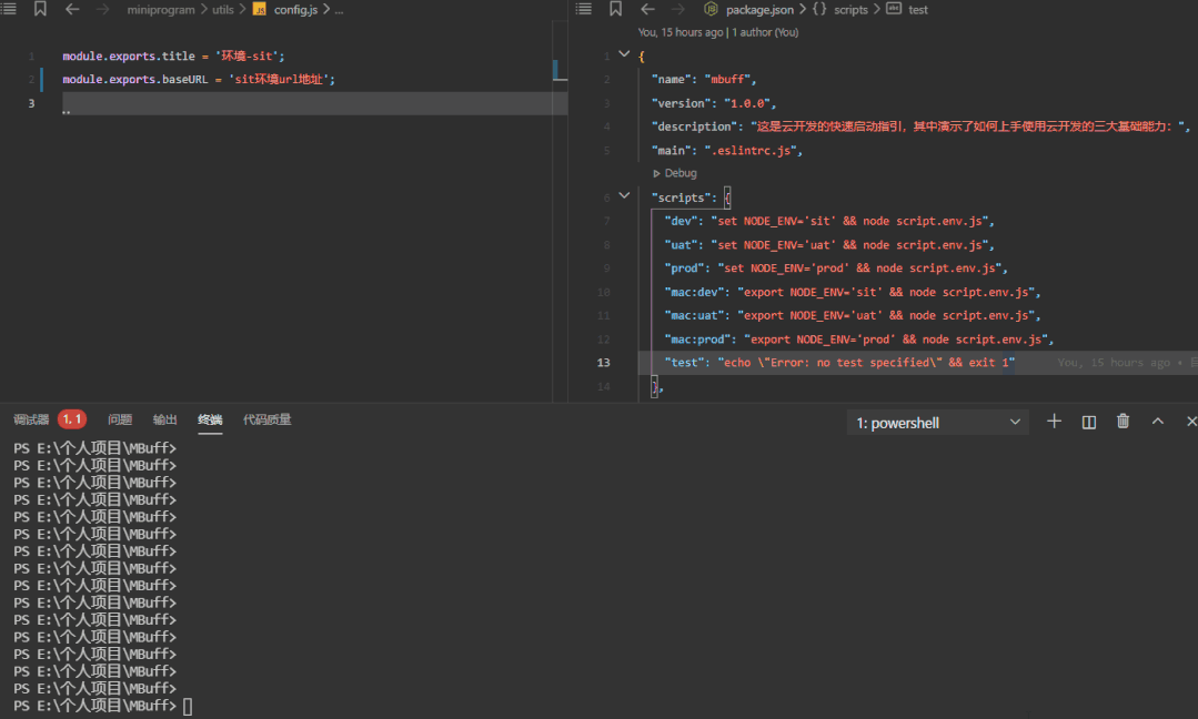 配置对应的环境命令 NODE_ENV=‘sit’ 即为当前环境是sit