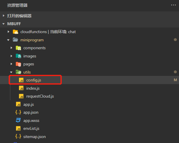 utils文件目录新建一个config.js用于配置或写入环境变量(可以创建一个空文件,具体写入可在第3步中配置)