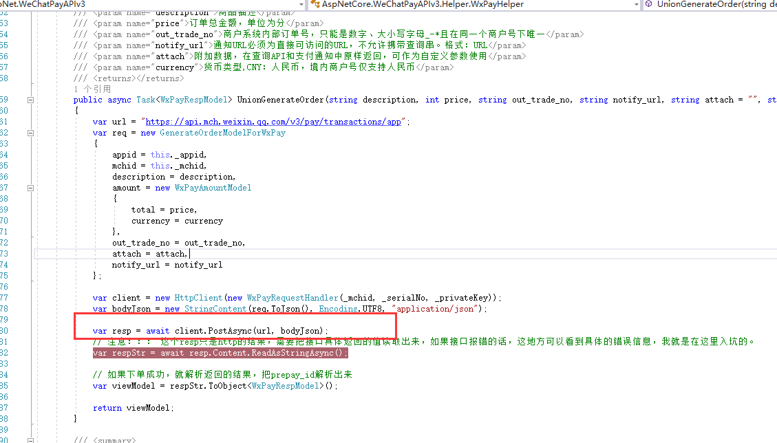 var helper = new WxPayHelper(WxPayConst.appid, WxPayConst.mchid, WxPayConst.serialNo, WxPayConst.privateKey);