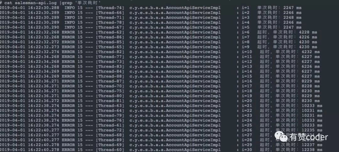 问题至此已经扑朔迷离了,但是我们的开发同学并没有放弃。仔细的小峰同学在排查机器日志时,发现了一个异常现象,某个平时不怎么报错的接口,在1秒内被外部调用了 500 多次,此后在那个时间段内,根据 traceid 这 500 多次请求产生了 400 多条错误日志,并且错误日志最长有延后好几分钟的。