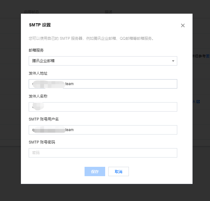 我们以邮箱登录为例,打开前面开关后,需要配置一下发件人