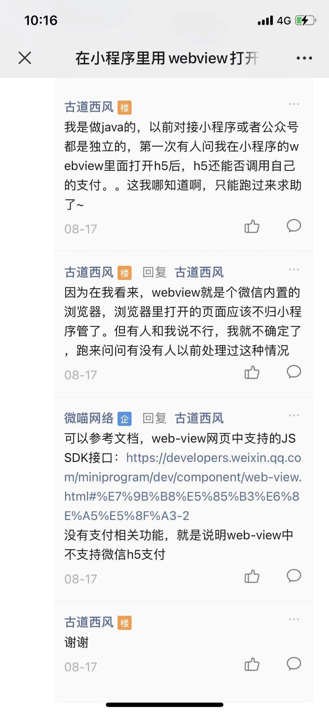 1)小程序web-view调用内嵌H5支付,H5可以正常支付吗?? - 微信开放社区 https://developers.weixin.qq.com/community/develop/doc/000caea320cdc014f6baaa4ec51800