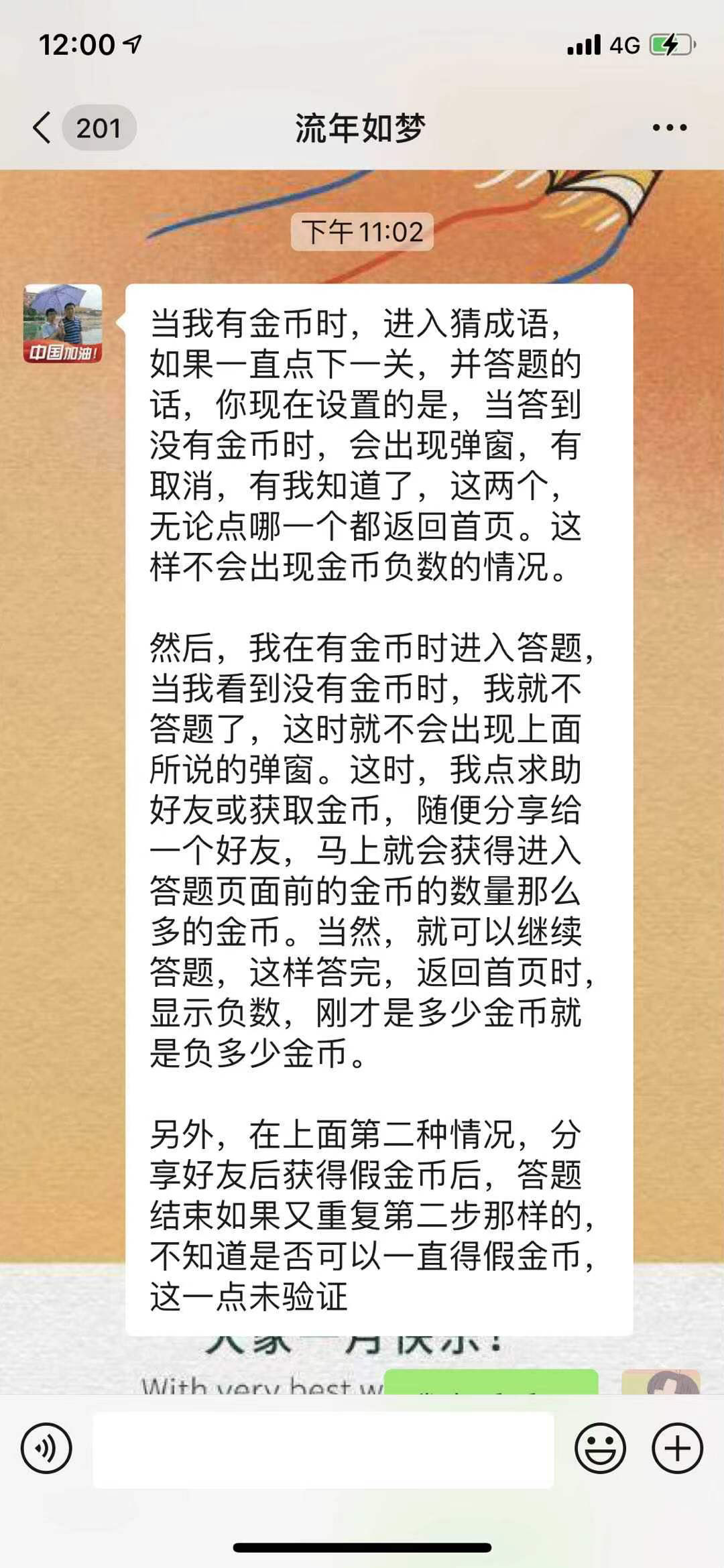 最近不断有用户反馈,成语闯关小程序会出现金币为负数的情况,昨天晚上我排查了一晚上,没有看到核心逻辑里面有异常情况,但是问题总归是存在的,今天联系了以为热心用户,帮我录了一个屏幕: