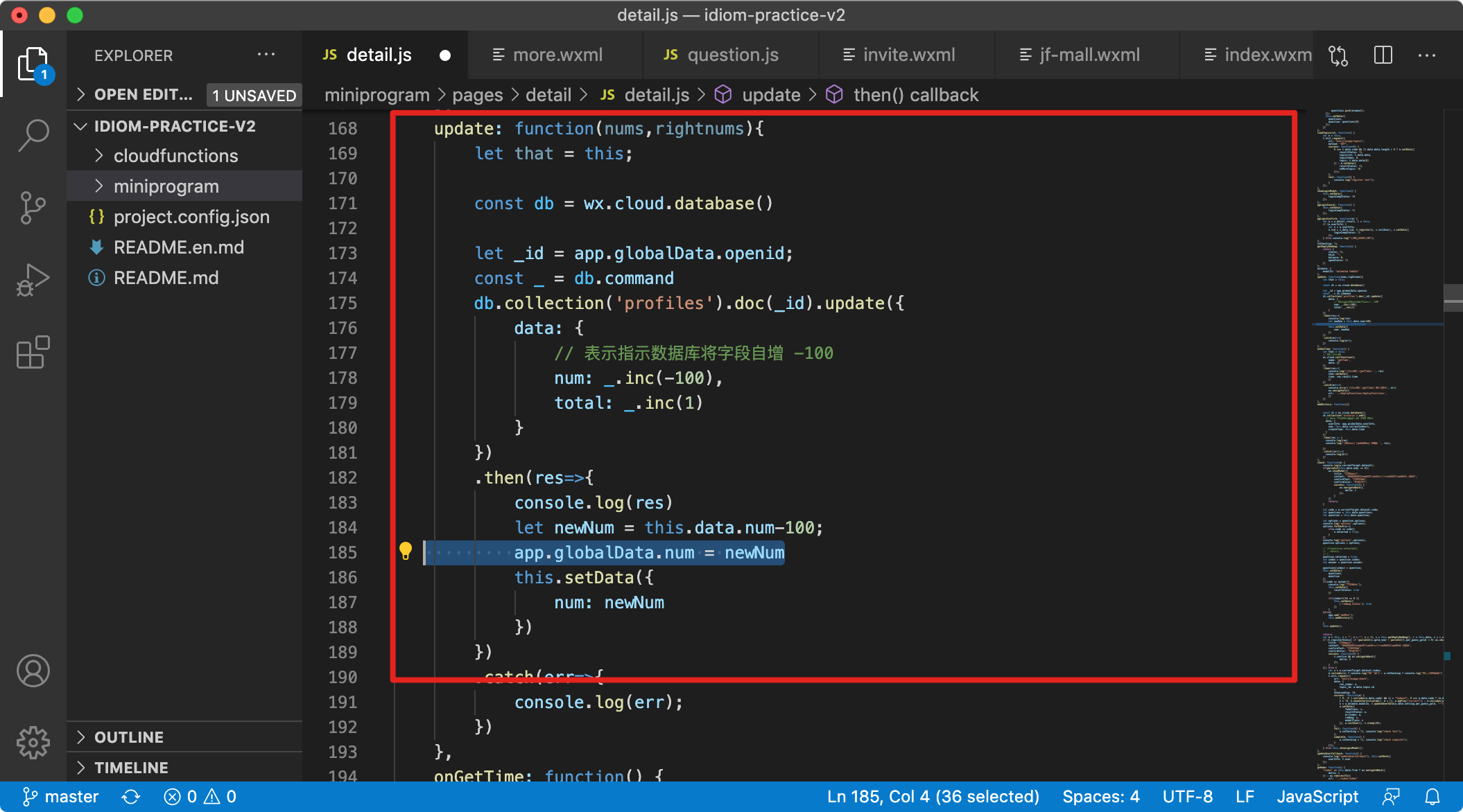上面是修复后的代码,具体增加了图二,185行,原来每次分享的时候都会执行一个初始化,问题就出在这个全局状态在当前页面发送变更的时候没有同步更新。