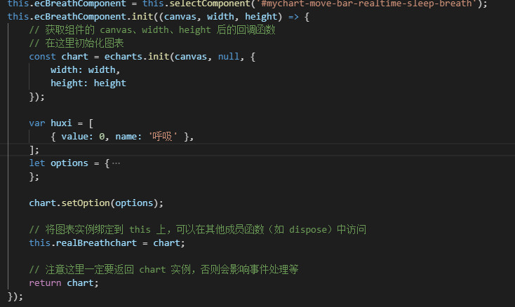 echarts 小程序demo 里面有其他的实例方法的,例如延迟加载,然后结合自己的项目研究一下