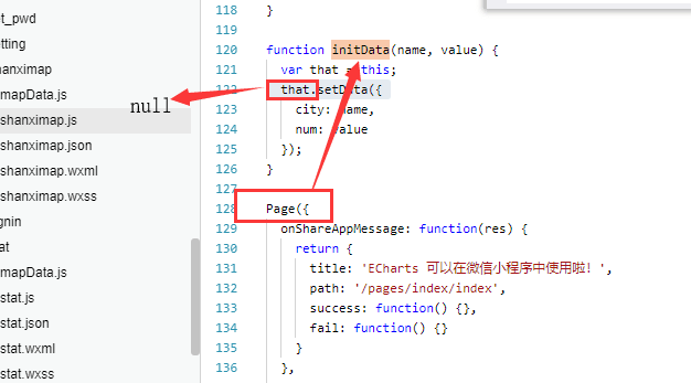 ,最近再做echarts,官网的demo所有的initCharts全在page页面外,在page页面外的函数获取数据后,想渲染在页面上,但是不能用that.set.急急急