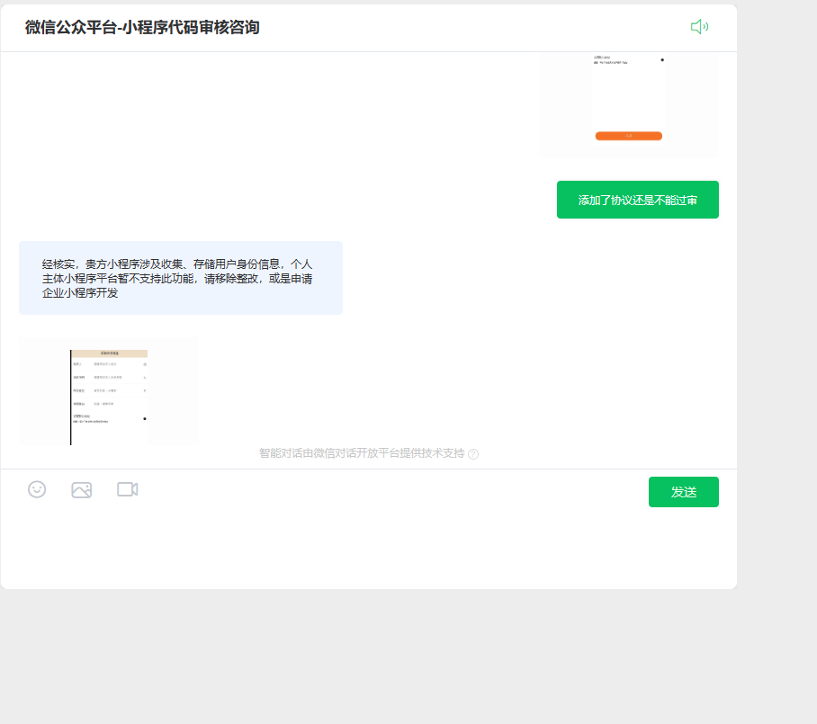 1: 你好,你的小程序涉及收集、存储用户敏感身份信息,平台暂不支持此功能,请修改。