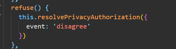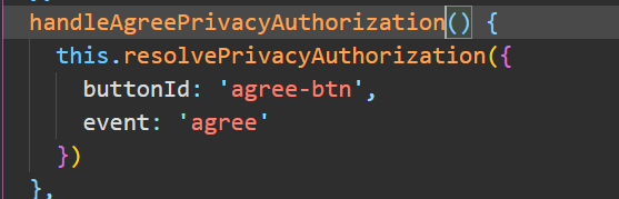 然后在handleAgreePrivacyAuthorization里就可以获取到点击事件,这样写