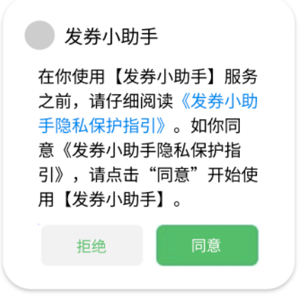 在以上接口用到的页面,需要画一下类似上边的弹窗(这个弹窗可以全局定义个组件,方便多个页面共用),然后里边蓝字可以点击后调用wx.openPrivacyContract(Object object)接口即可,会自动跳转打开隐私协议页面。