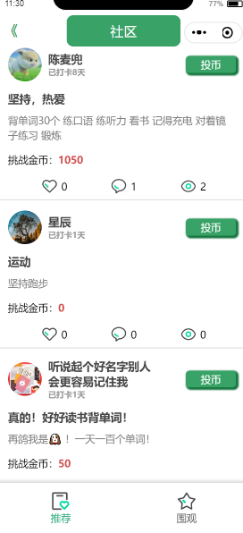 社区界面:用户可于此处查看其他用户所创建的目标