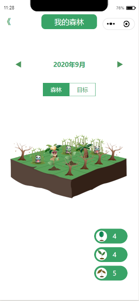 我的森林界面:用户当月所种下树苗都可在此处展现