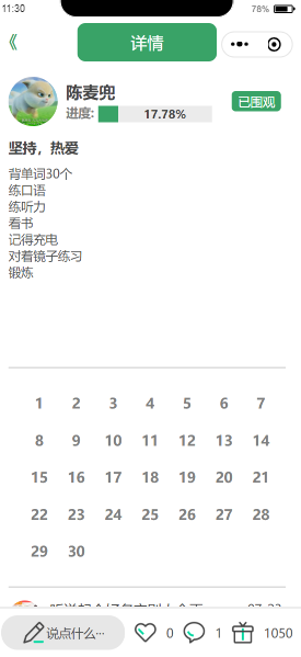 目标详情界面:用户创建目标后可于此处查看自身的目标详情