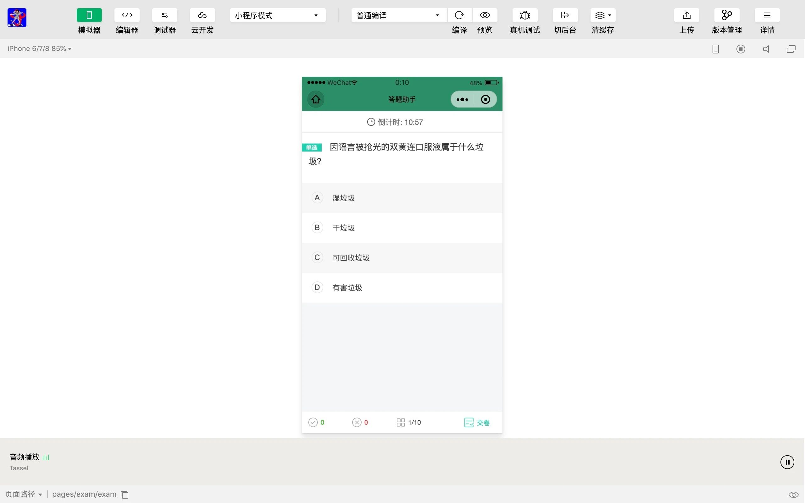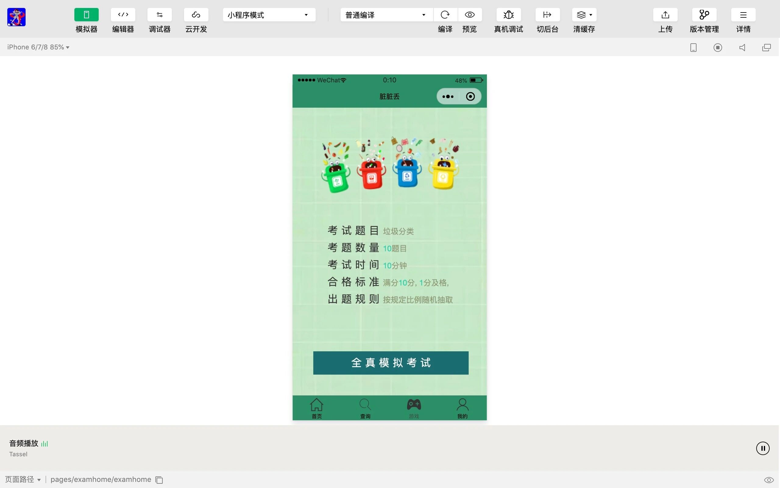 由于代码包太大了,不能在手机里面预览截图,只能通过微信开发者工具预览截图示例下了。