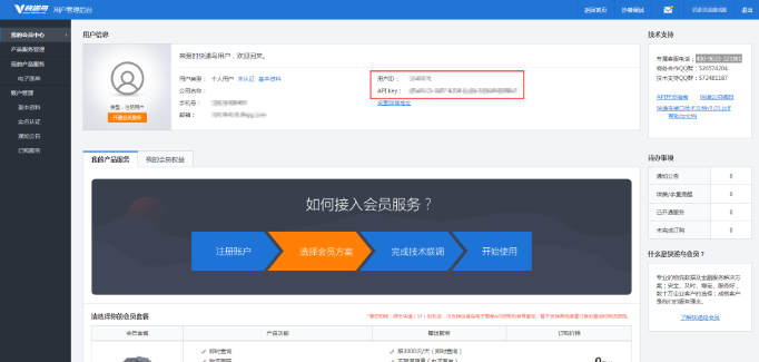 认证成功后,进入“产品服务管理”,开通相关会员服务