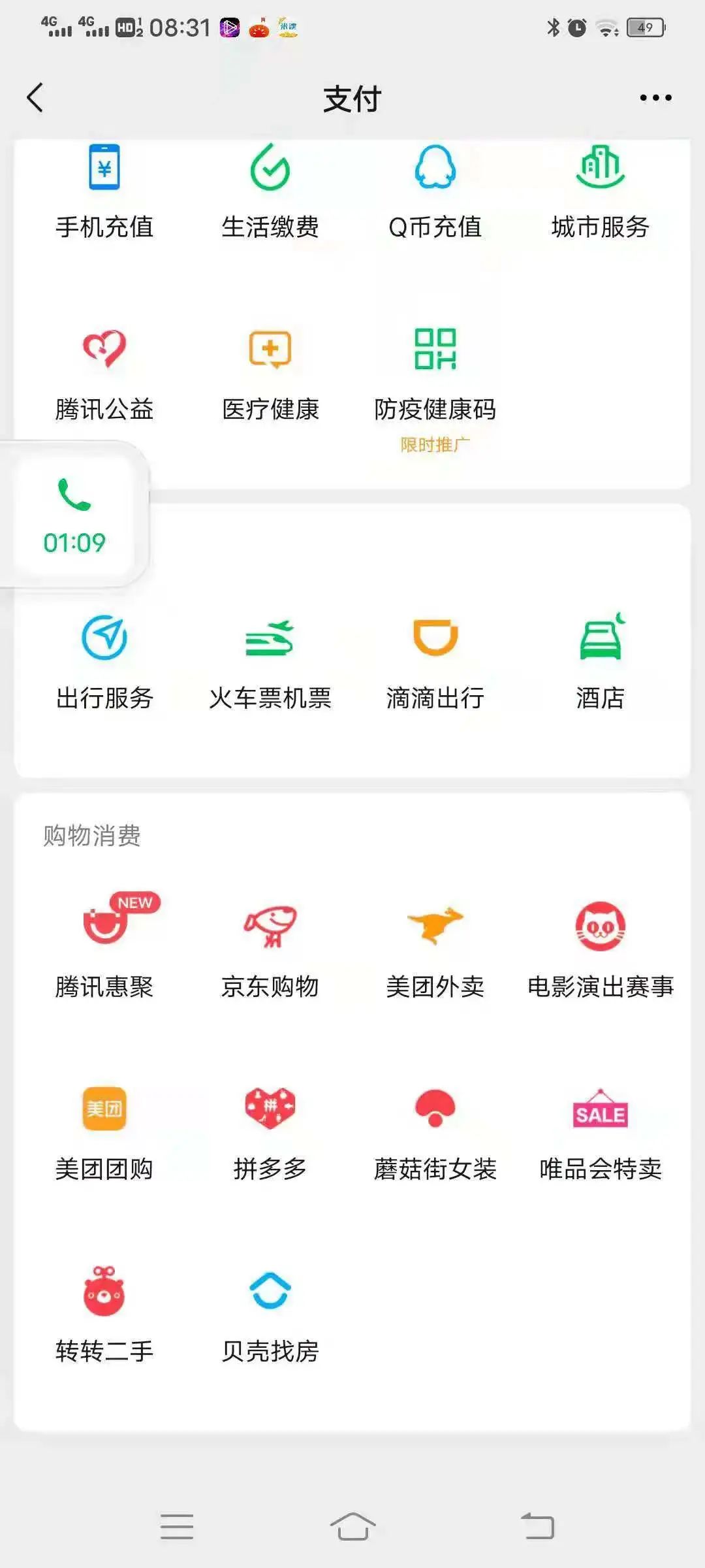 开放入口会有红点提醒,我-支付-购物消费第一个