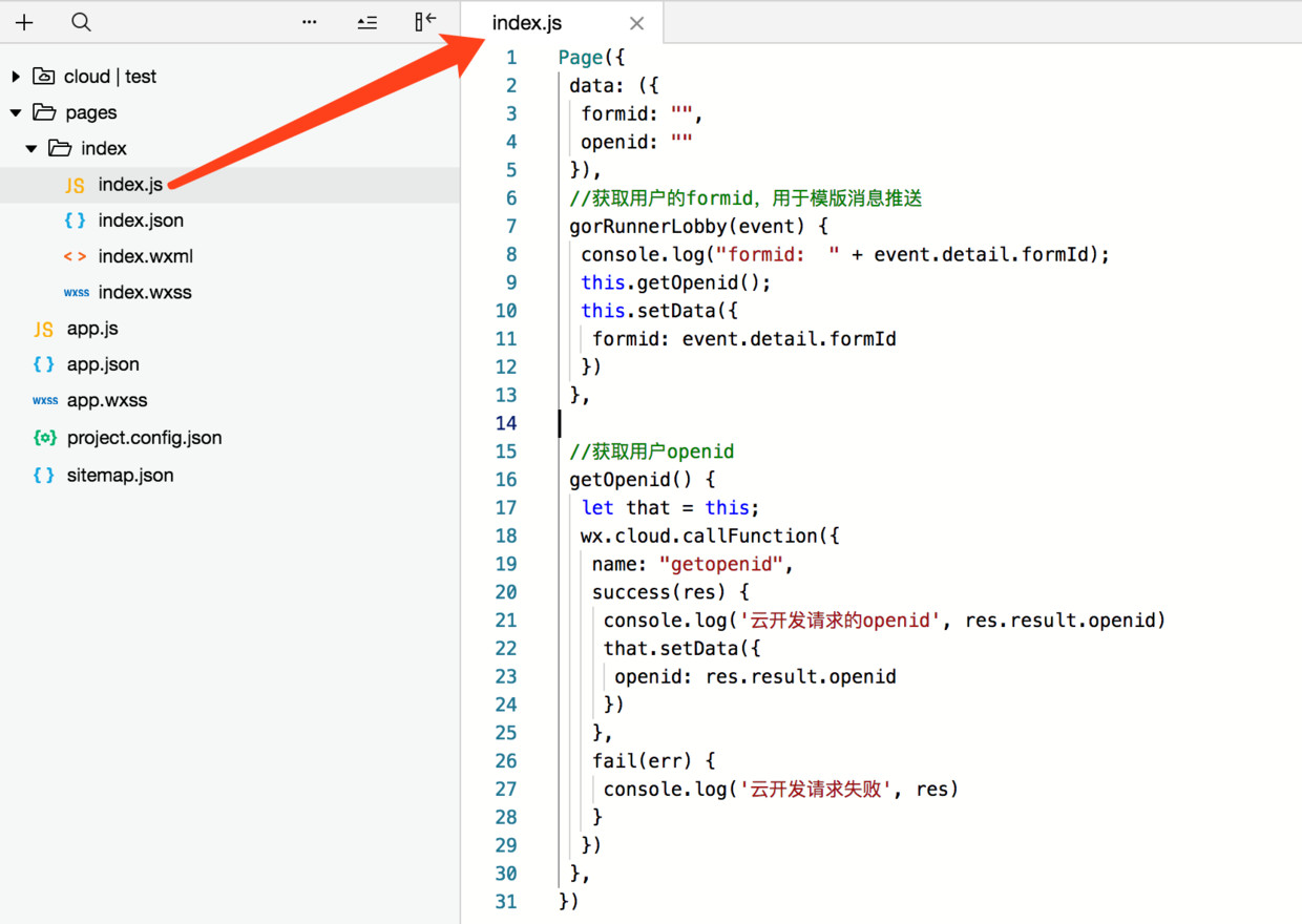 下面简单写个获取formid和openid的完整示例,方便大家学习