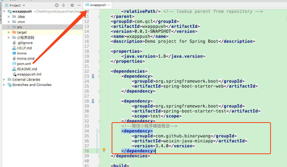1,需要在pom.xml引入一个三方类库(推送的三方类库)
