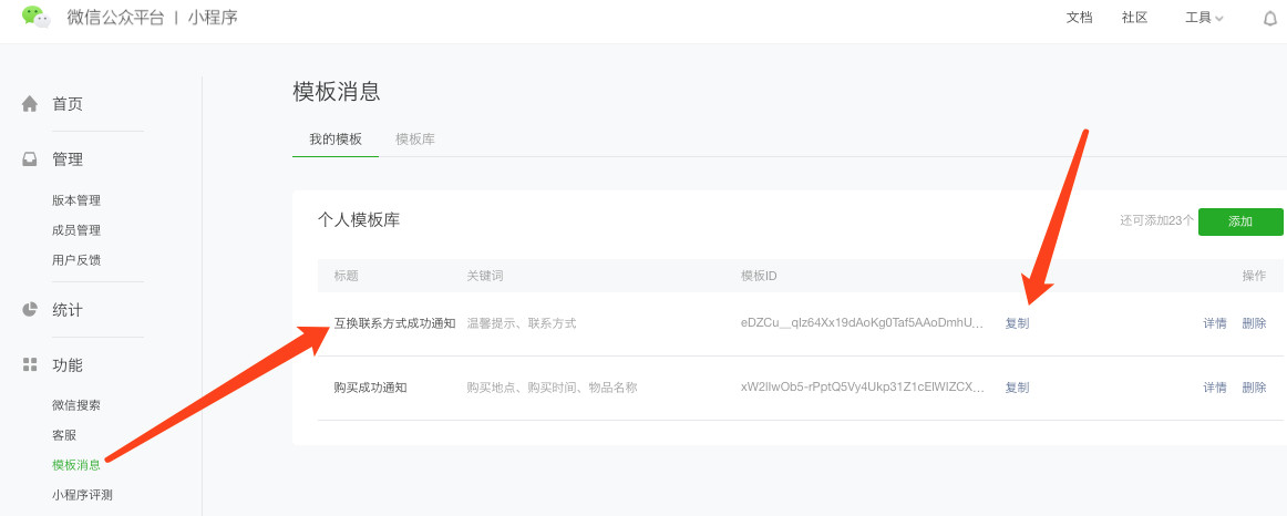 WxMaTemplateData data1 = new WxMaTemplateData("keyword1", "获取老师微信");