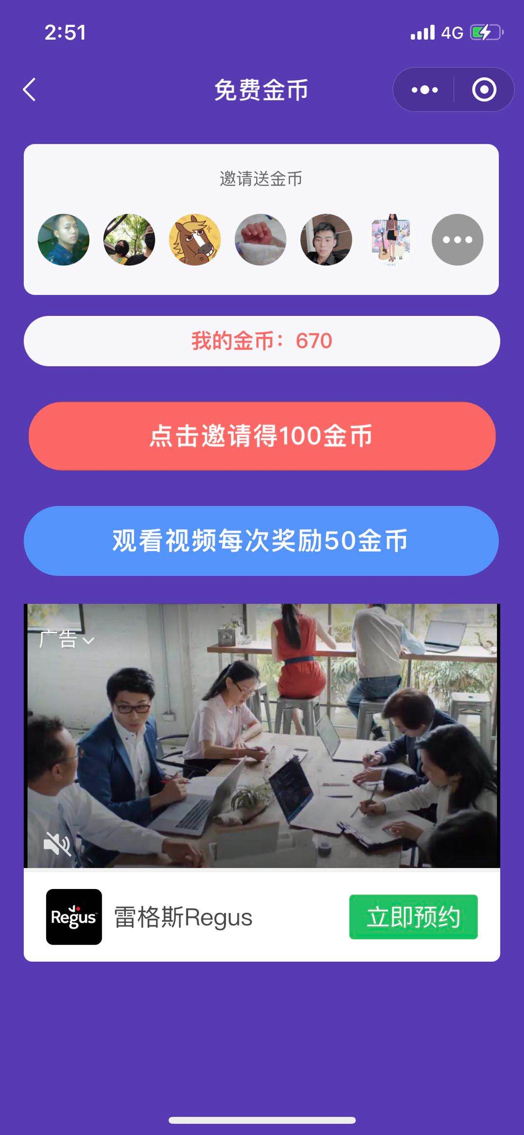 3)观看激励式视频广告可获取一定金币(此处是否合规有待考虑)