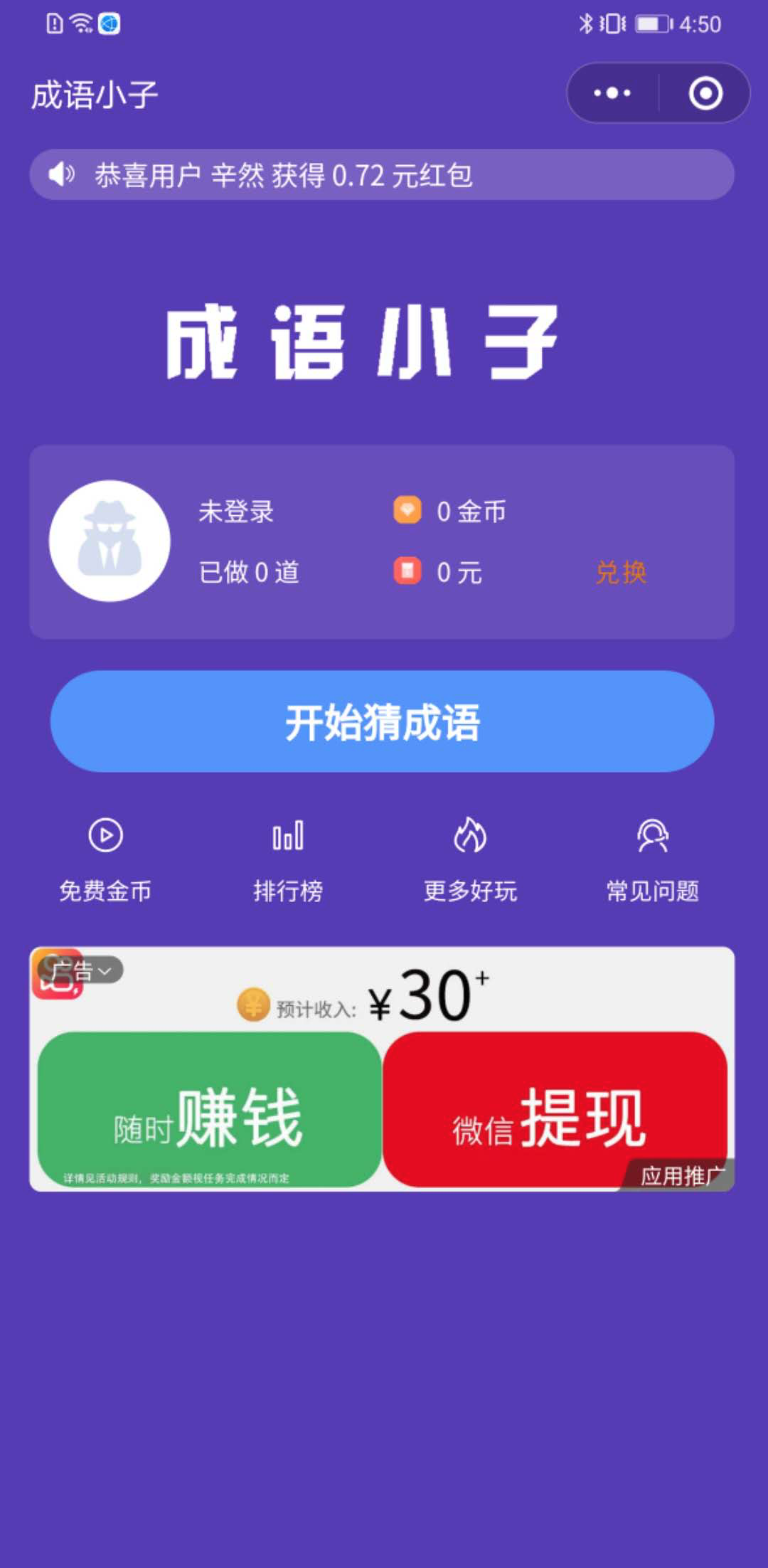 本文通过自身最近几天的体验,总结了成语答题赚小程序的一些运营策略,希望通过这种分享,认识更多的朋友