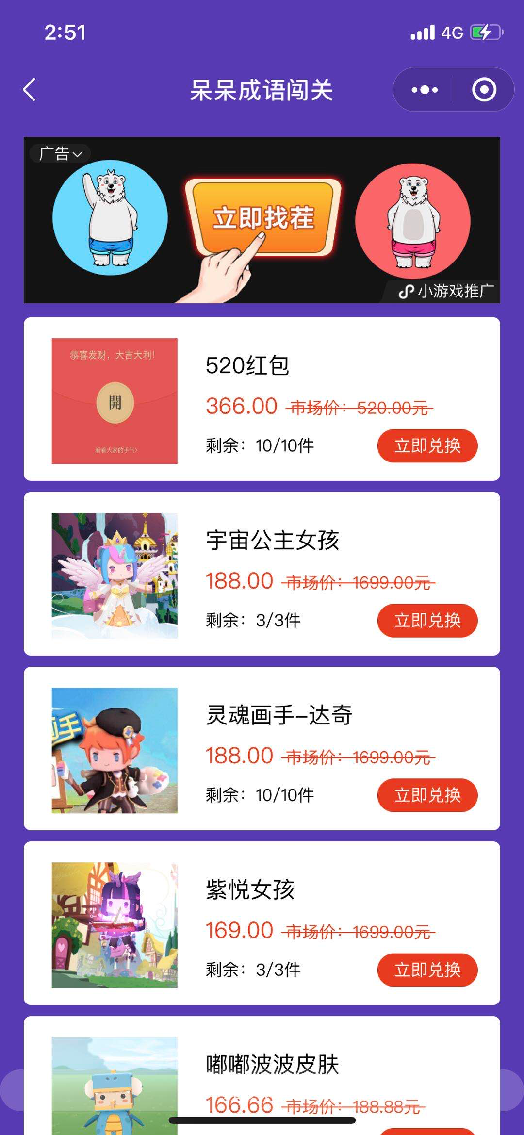 3)广告位置3,商品兑换页面,此处安排一般的banner广告和插屏广告