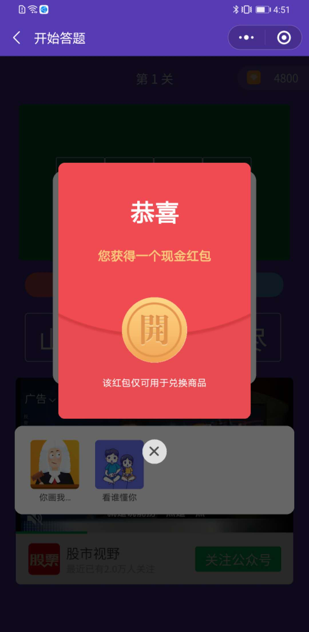 我刚开始玩的时候,以为我做对的越多,红包给的也越多,后面跟几个运营同学聊天才发现,完全不是这么一回事,我贴个图