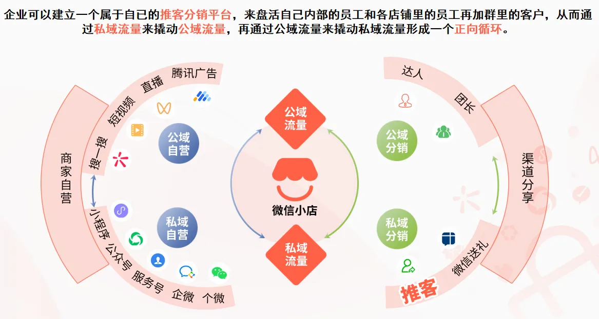 对于有私域运营需求的商家,可选择两种运营路径:一是自主注册成为联盟带货机构,开通「推客带货」功能并开发专属推客带货小程序,实现对推客及商品分销的全流程自主管控;二是借助第三方成熟的推客小程序工具,将自有商品及带货内容接入平台,引导内部分享者通过小程序获取标准化推广素材,开展分享传播工作。