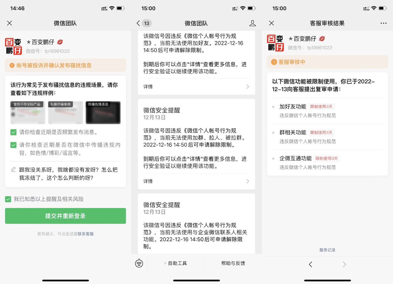 如果说是因为我发违规广告,违规内容,恶意广告等将我账号封了,我也心服口服,可是这个我就拉个好友被封,真的是挺冤的。