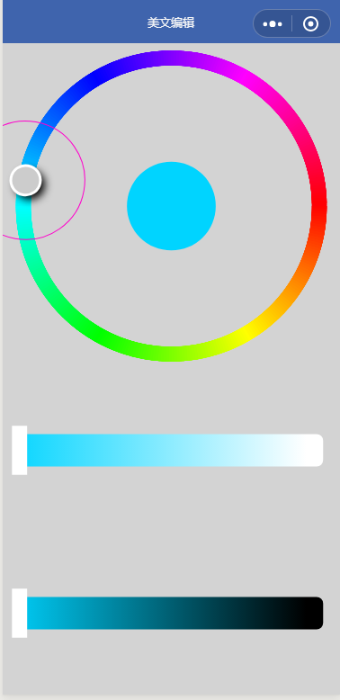 因为wxs模块是提供requestAnimationFrame接口的,所以我就想,使用canvas作为底部颜色环,上面就直接用view作为指针,这样,事件触发和处理比起纯canvas要简单得多,而且还能利用rAF回调页面接口去绘制其他canvas。