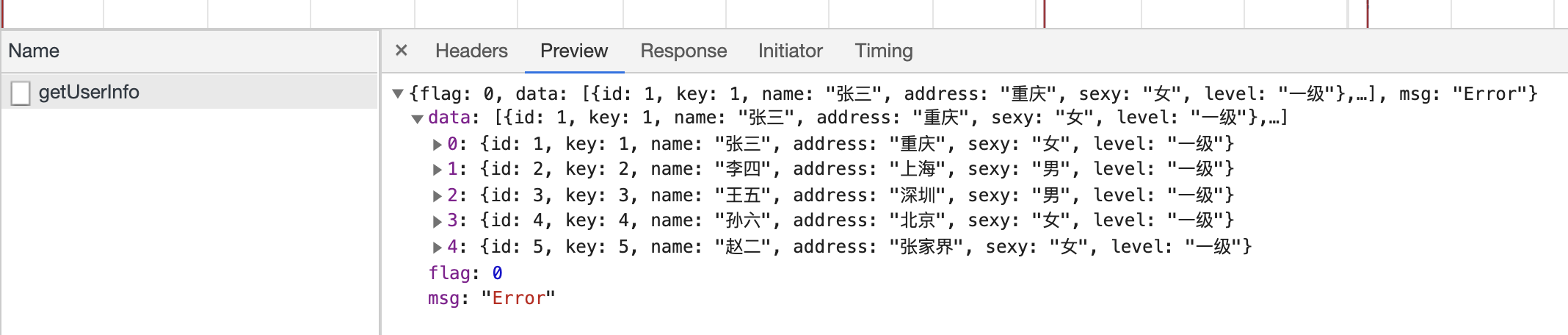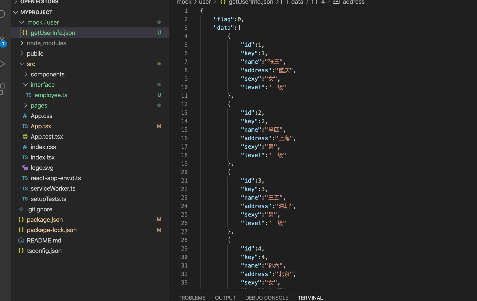 在src同级目录下新建文件夹mock,在mock文件夹中新建目录user,在user目录下新建json文件,将mock数据写入