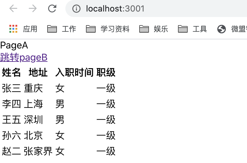 此时运行npm start启动项目,就可以访问对应路由的页面并实现页面间的跳转