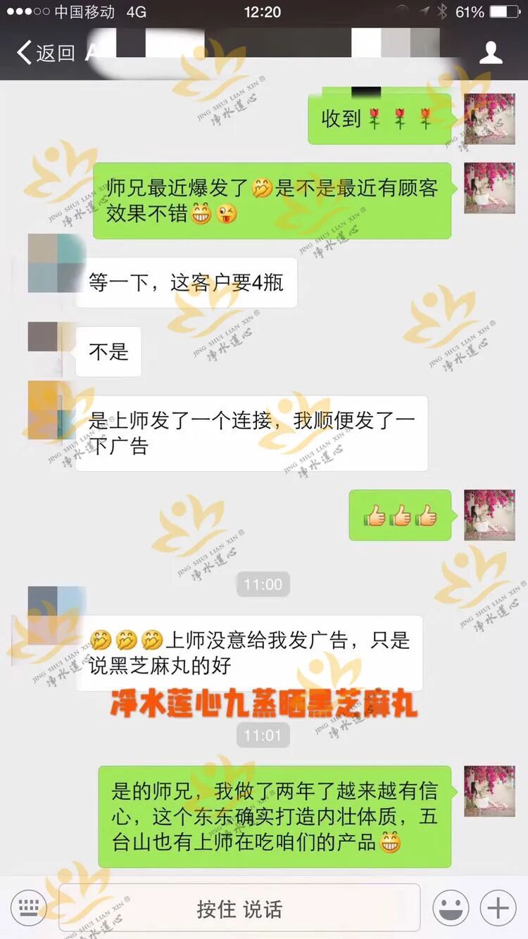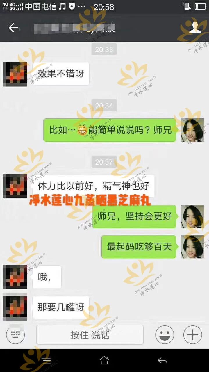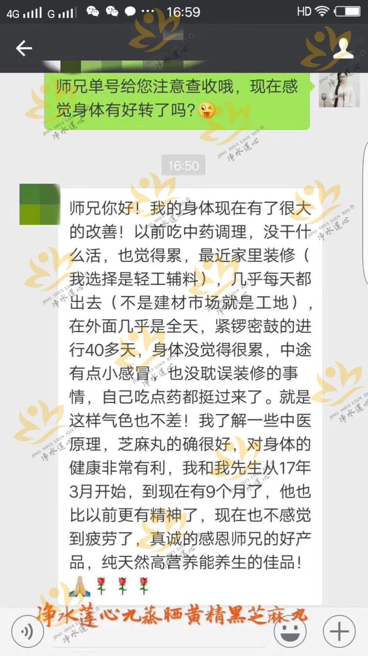 以下是净水莲心部分顾客服用一段时间九蒸九晒黄精芝麻丸后的反馈情况,本品非药物,个人体质不同,效果因人而异,反馈仅供参考: