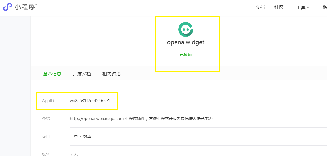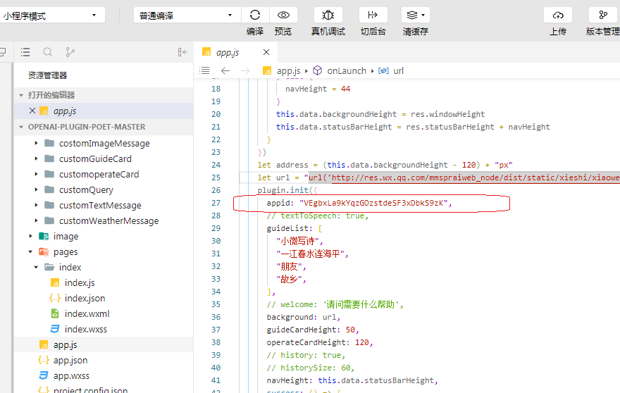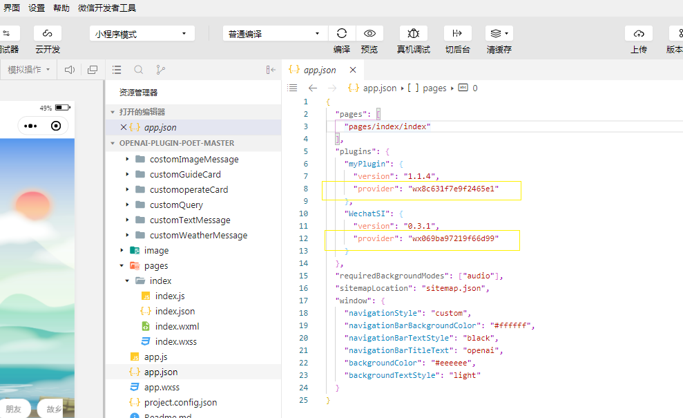 第一个appid,插件openaiwidget 有的id,的appid和app.json中的myPlugin中provider;